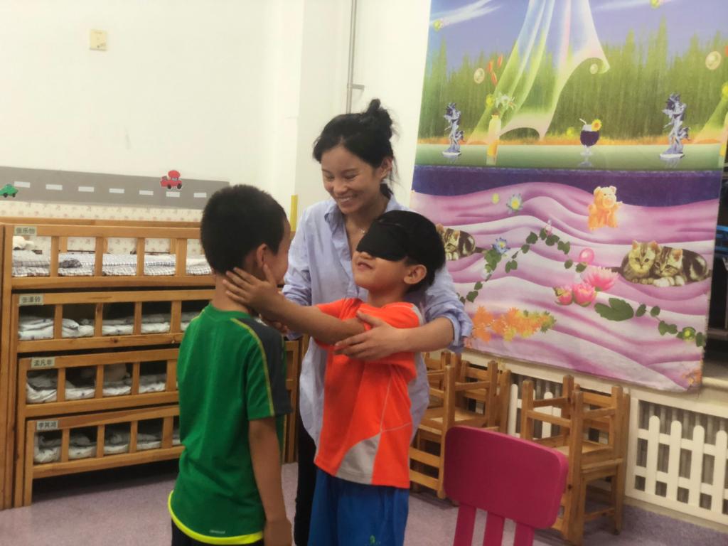 “蒙上眼睛,你能猜出他是谁吗?”每天生活在一起的孩子们一下子就说出了同伴的名字。“因为他刚剪过头发,所以我知道是谁”,即使增加难度,只能摸小脸庞,与孩子们朝夕相处的梁老师也能从一个细微的变化准确猜出身边的孩子。尽兴地和气球来一次亲密接触也是一件不错的事情。“比比看谁的气球抛的高”“让我们来一场气球大战”兴奋刺激的游戏既释放了孩子们的能量。