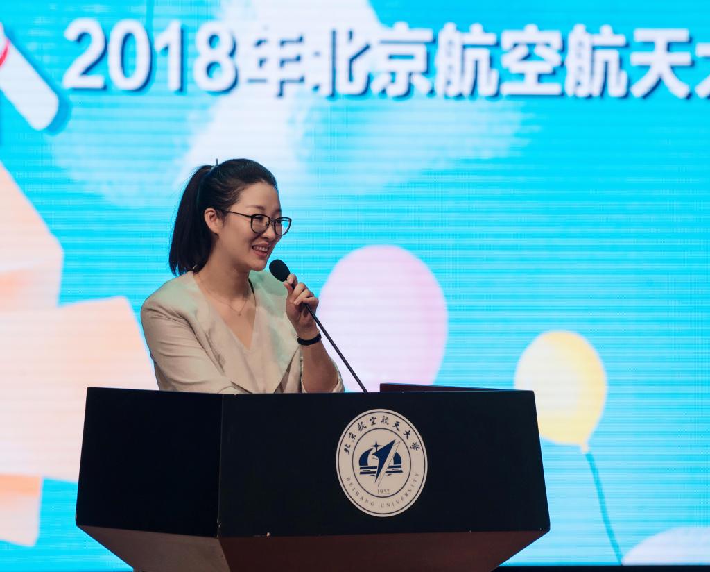 北航幼儿园园长彭博在典礼上致辞,她代表幼儿园的全体教职工向孩子们表示祝贺,分享了孩子们在幼儿园开心生活、快乐成长的美好点滴,为孩子们送上了温情的毕业祝福。
