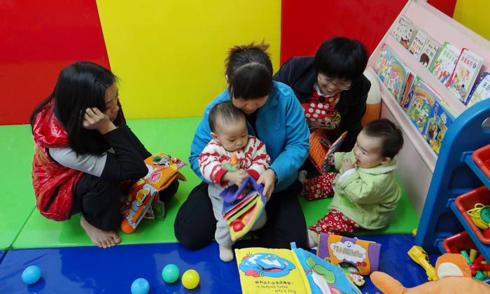 2013年10月17日、25日,新学期早教基地活动站正式开课了。幼儿园主动联系社区内的外来务工子女的家长,相约在活动站进行早教服务。本月参与活动站活动的婴幼儿约为1~2岁的孩子,早教基地的老师们针对孩子的年龄特点,带领家长开展“快乐彩虹伞”“小飞机”“海洋球跳一跳”“大母鸡”等感知方位变化、进行身体抚触的亲子互动游戏,并结合“亲亲书吧”的书籍向家长示范如何与宝宝进行亲子共读的技巧。同时,幼儿园负责早教的谭俊大夫与家长们从婴幼儿生长发育、体能训练等方面,交流了低龄幼儿的生活护理对策.