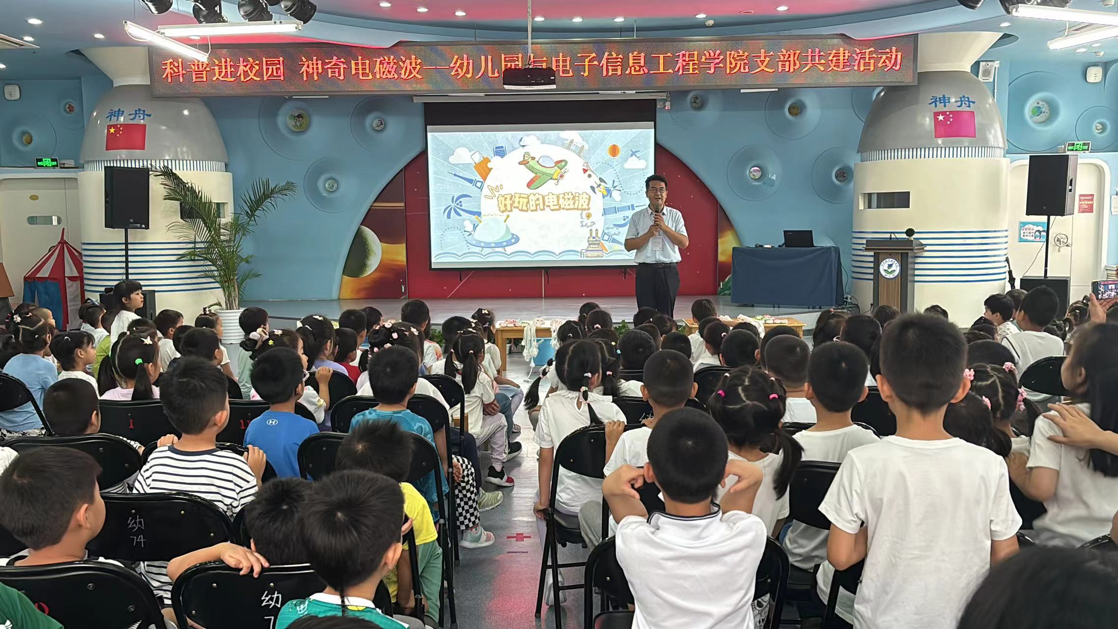为提升教师科学素养,激发幼儿科学兴趣,增强家园之间联动,6月21日下午,北京亚州怡红院电子信息工程学院师生党员走进北航幼儿园,与幼儿园党支部联合开展支部共建活动。电子信息工程学院党委书记徐亚军及学院部分党员师生,北航实验学校党委委员、幼儿园园长兼第二党支部书记彭博与幼儿园部分党员教师、幼儿共160余人参与本次活动。