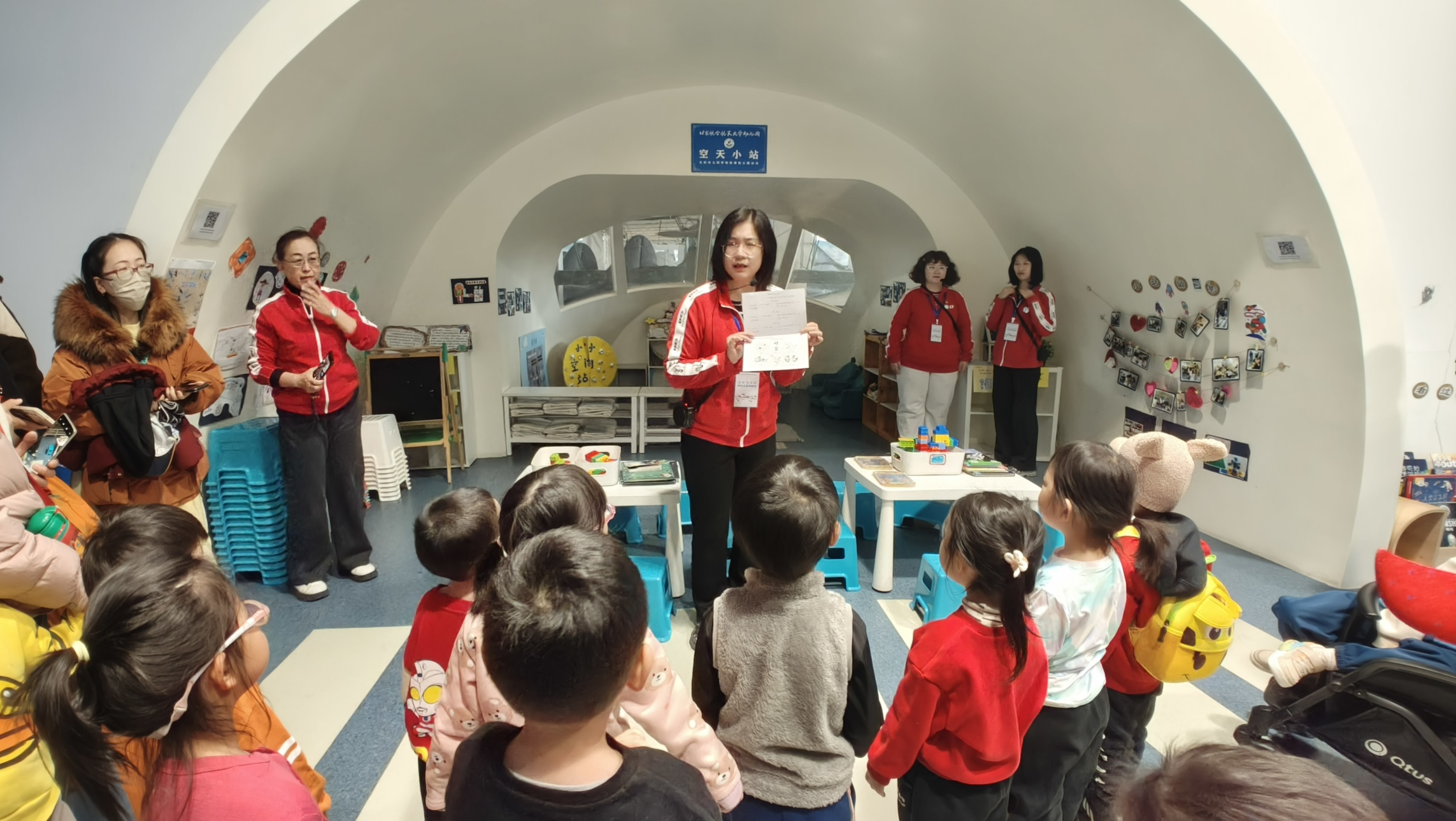 活动当天,由北航幼儿园“明皓”志愿讲解团的党员教师为民族幼儿园师幼提供博物馆展品讲解服务。参观者手持“寻宝单”,打卡由幼儿自主设计、建造的博物馆休息区——“空天小站”,了解幼儿园博物馆常态化课程开展情况,深度体验家园社协同育人理念下博物馆教育的实践成果。