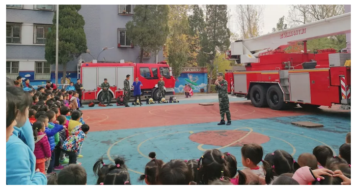 活动当天,大喇叭突然传出全园紧急广播:“幼儿园现在发现火情,请全园教职工迅速组织幼儿进行安全疏散。”