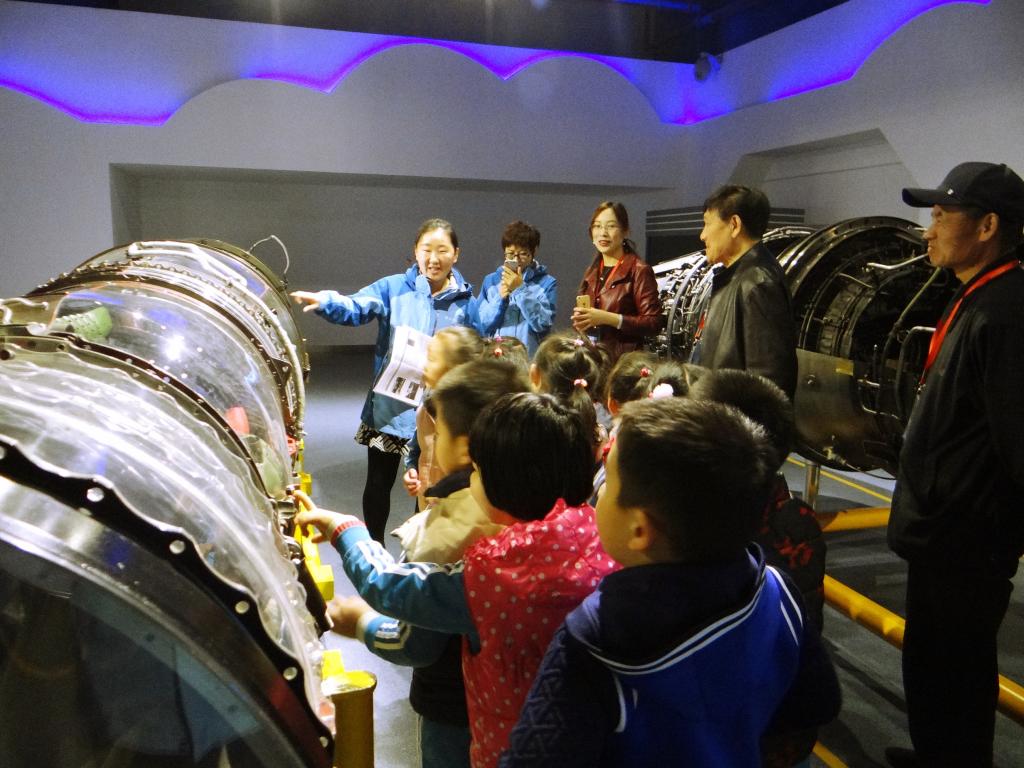 步入展厅,孩子们发现"咦?航空馆跟以前不大一样了!多了好几架飞机!"原来是新来了歼十,孩子们发现飞机的前面还展示着首架歼十的制作过程,发动机的制作是需要手工制作的,他们都体会到制作飞机的不易。本次活动基于前期"星空课程"的经验基础,借由新展品的进入,从文化内涵的角度出发深入探究展品背后我国航空事业"大国工匠"的情怀。